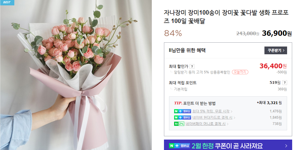 꽃다발 : 100일에 여자친구에게 꽃다발을 주는 것은, 어찌 보면 다른 선물을 주기 전, 기본으로 해야 하는 행동일 수 있습니다.