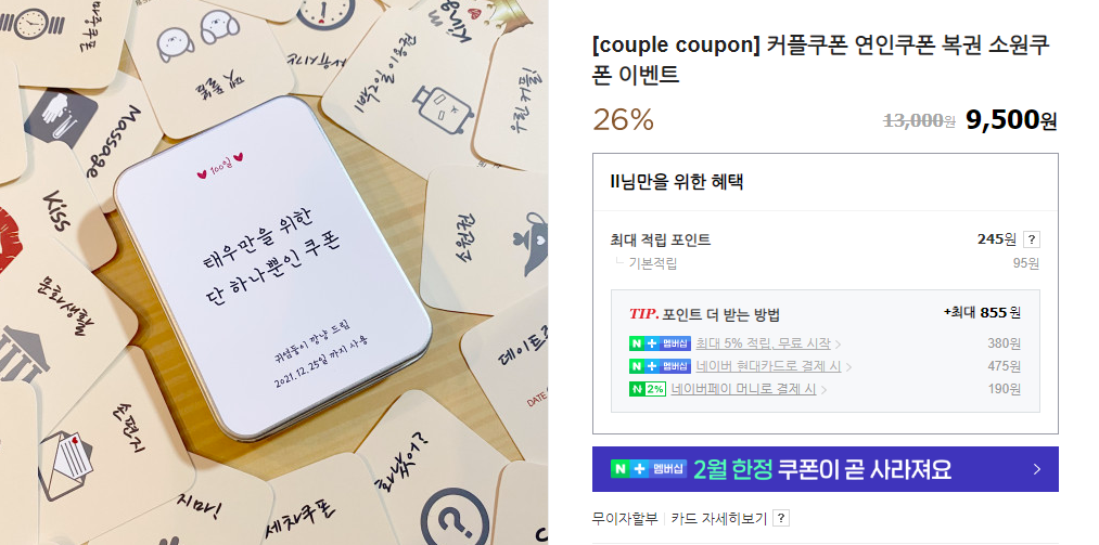 커플 쿠폰북 : 연인 간에 서로 원하는 행동이나 상황을 쿠폰에 적어, 서로 필요할 때 사용하는 커플 쿠폰북 또한 좋은 선물이 될 수 있습니다.