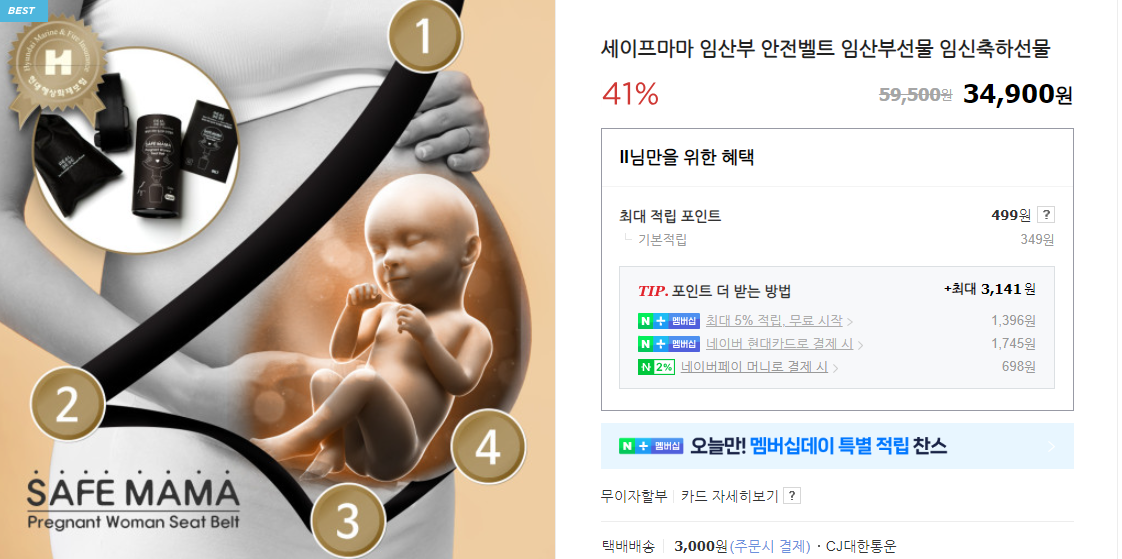 임산부 전용 안전벨트 : 임산부의 경우 배가 많이 불러있으므로, 임산부와 아이의 건강을 해치지 않는, 임산부 전용 안전벨트 선물도 좋습니다.